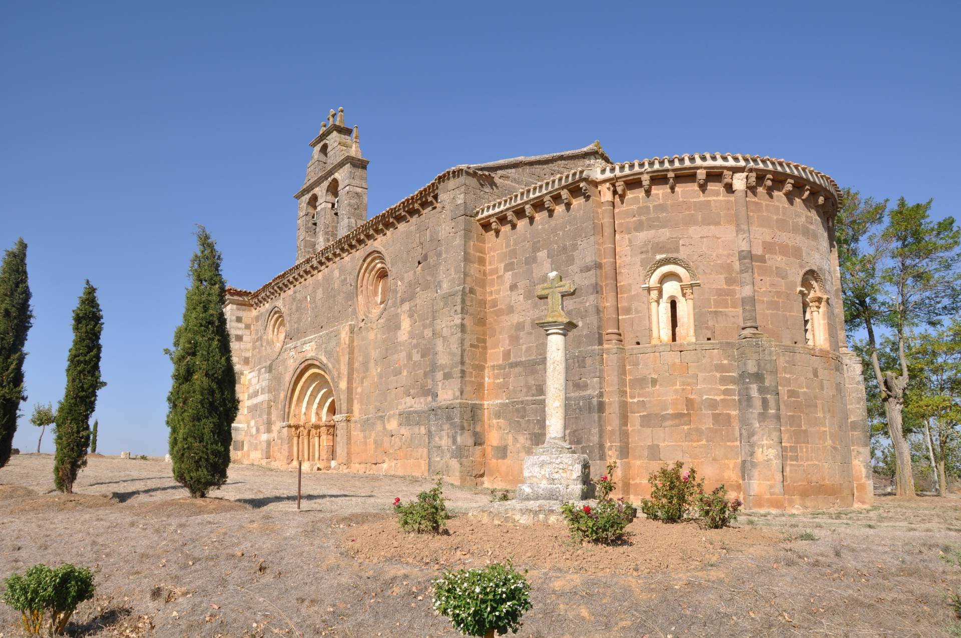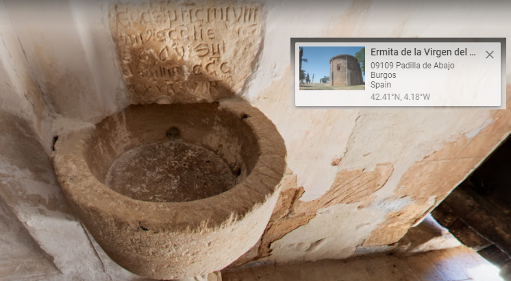 Escudos de Padilla ~1298. A tenor de una inscripción colocada en el muro de la epístola, junto a la pila bautismal, toda ella en latín, podemos datar esta iglesia en la era MCCCXXXVI (año 1298), obra tardía del románico y ejecutada en su mayor parte en el siglo XIII aunque son posteriores transformaciones. Pudo ser, según parece, la iglesia parroquial de algún poblado vecino cuyos vestigios aparecen de vez en cuando en las fincas de labrantío cercanas. La imagen que presenta esta iglesia ermita de Nuestra Señora del Torreón es magnífica, tanto en su fachada principal como en el ábside y la elegante espadaña que luce su tejado. Tiene nave única y cabecera semicircular con admirable aparejo de sillería de arenisca y con puntuales decorados de interés: ventana del ábside, canecillos a lo largo de la iglesia, portada y algunos capiteles. La fachada meridional se organiza con una portada en el centro y dos óculos en la parte superior. El ábside por su parte se organiza en dos cuerpos separados por una imposta abocelada y tres paños. En cada paño se abre una ventana formada por un arco de medio punto soportado por columnas rematadas en hermosos capiteles. Mención muy especial y digna de contemplarse merece la portada del templo. La ermita de Nuestra Señora del Torreón se sitúa a 500 metros al noroeste del pueblo de Padilla de Abajo, junto a la carretera que conduce a Padilla de Arriba.[2] [1-Padilla de Abajo] por Wikipedia. [2-Nuestra Señora del Torreón: ermita del tardío románico] por www.archiburgos.es |