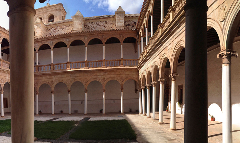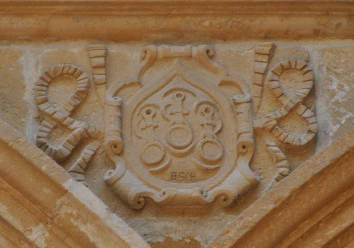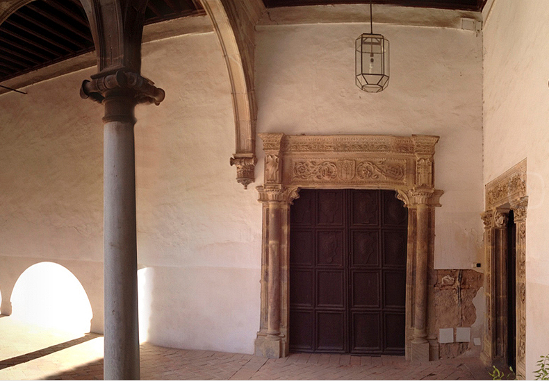 ...Inmediato a la iglesia, por la parte del Mediodía, está el claustro del convento. Su fábrica es de arcos y bóvedas de ladrillo con labores antiguas de yeso en todos los cuatro lienzos, y en ambos lados, a trechos, grabados en piedra, las armas de Don Garci López de Padilla, XXIX y ultimo Maestre de Calatrava, que a diferencia de los demás comendadores y Maestres de este apellido, sin el escudo de las tres padillas (común a los de esta familia).[1:61] [1-Descripción del Santo Convento y Castillo de Calatrava la Nueva. V1] Por Fernando de Cotta y Marquez Prado. [2-Descripción del Santo Convento y Castillo de Calatrava la Nueva. V2] Por Fernando de Cotta y Marquez Prado. [3-Descripción del Santo Convento y Castillo de Calatrava la Nueva. V3 Indexada {34 Padillas}] Por Vicente Castaneda. [4-Diffiniciones de la Orden y Cavalleria de Calatrava conforme al Capitulo... {37 Padillas}] Por Orden de Calatrava. [5-Castillo de Calatrava la Nueva] Por Wikipedia. |
