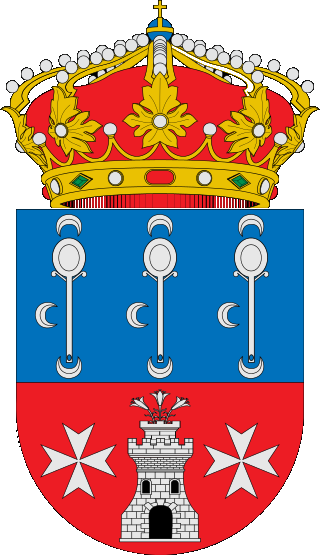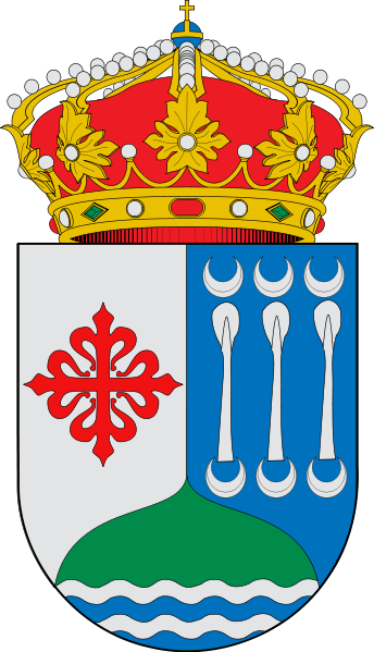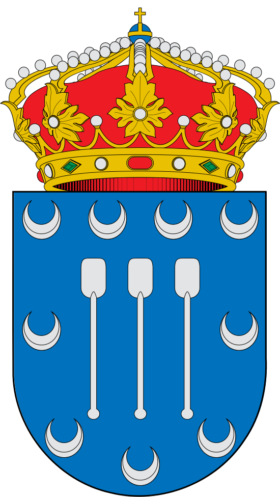 Blasón: Escudo partido 1.º En campo de plata un rollo de justicia de azur puesto sobre ondas de azur y plata. 2.º En campo de azur, tres padillas de plata puestas en faja y acompañadas de nueve medias lunas de plata, tres en jefe, tres en punta y tres en los flancos siniestros de las padillas. Escudo timbrado de la Corona Real Española. [] |