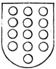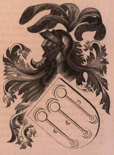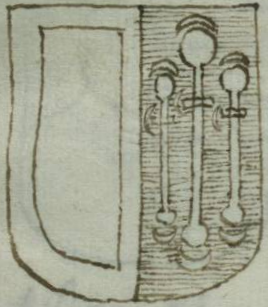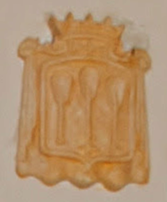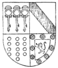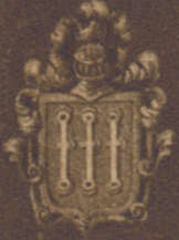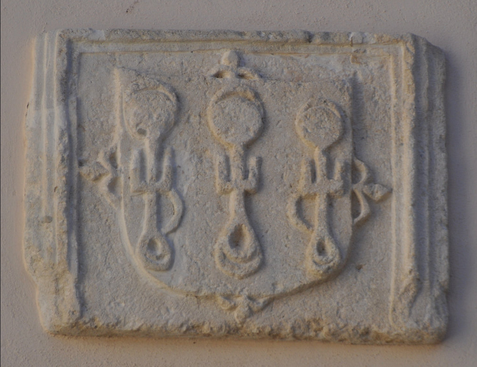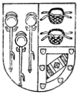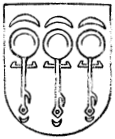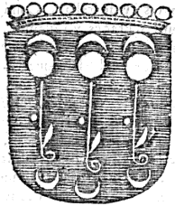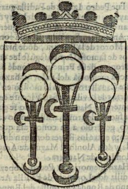 Blason:En campo azul, tres padillas de plata, y en cada uno tres lunas de lo mismo. |