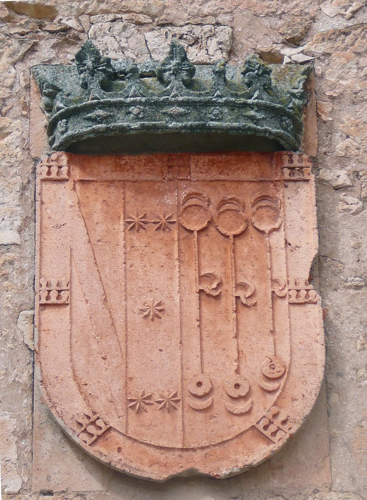 Escudo de Maria de Padilla ~ 1354, como Reina de Castilla. En el Monasterio de Santa Clara, en Astudillo. Y en el documento Ensayo historico biografico sobre D. Pedro I de Castilla y de D. Maria de Padilla. [1:63] [1-Ensayo historico biografico sobre D. Pedro I de Castilla y de D. Maria de Padilla {85 Padillas}] Por Cesar Fernandez Ruiz. [2-Castillo de Calatrava la Nueva] Por Wikipedia. |