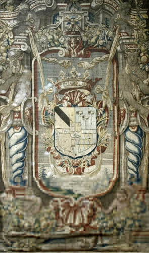 desde arriba, podemos observar con detalle sendos tapices que cuelgan de sus paredes, tapices con escudos del siglo XVII: el de la derecha procede de Bruselas y representa a los Carvajal, Padilla, Acuña y Enríquez ...[1] [1-La Exquisitez del XIX: El Museo de Cerralbo ] Por Investigart. |
