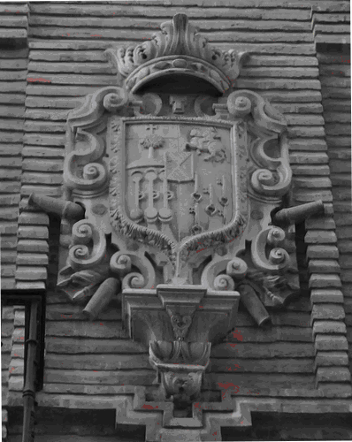 Descripción del Santo Convento y Castillo de Calatrava la Nueva Blasón: Escudo dividido en tres cuarteles: en el primero están 3 padillas de plata en campo azul; en el segundo, dos calderas de oro y rojo en campo de plata, y en el tercero, en campo turquí o colorado oscuro (gules), una bandera de oro y, en ella, en un cuartel blanco, la cruz roja de la orden y puntas turquíes, y en la orla, de plata, seis escudos azules con guiñas de plata. Estas armas del comendador mayor están en ternos que dio para el altar y en toda la plata que dejo. Además de este escudo puso en las dichas vidrieras las columnas y "Plus Ultra", blasón del emperador Carlos V, con la cruz de Borgoña y el Toison, preciándose de hechura suya. En la vidriera de la estrella hay dos letreros en el cristal, debajo del escudo de Padilla. [1:28][3:435] [1-Descripción del Santo Convento y Castillo de Calatrava la Nueva...] Por Fernando de Cotta y Marquez Prado. [2-Castillo de Calatrava la Nueva] Por Wikipedia. [3-Descripción del Santo Convento y Castillo de Calatrava la Nueva. V3 Indexada {34 Padillas}] Por Vicente Castaneda. |