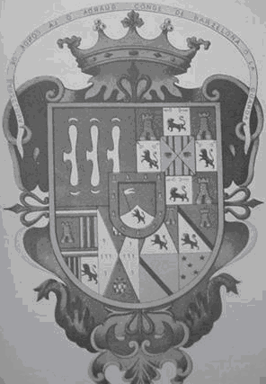 Blasón: Escudo cuartelado. El primer cuartel á la derecha por Padilla en campo azur tres padillas de plata. El segundo cuartel a la izquierda, por Guardiola, escudo flanqueado, el jefe y la punta de gules con cinco bastones de oro; los flancos de ese metal y un ojo en cada uno: bordura dividida en cuatro piezas de plata alternadas con cuatro de gules, cargadas éstas de un castillo de oro y las otras de un león rapante de su color, con dos llaves sobre cada león. El tercer cuartel, á la derecha, partido el primer blasón cuartelado, siendo el I en campo de gules torre de oro; el 2o y 3o las sangrientas barras de Aragón y el 4 en campo de plata león rapante de sable, teniendo el jefe y la punta del 1o y 2o cuarteles tres fajas de gules, plata y azur. El segundo blasón a la izquierda, por Guzmán, escudo flanqueado, jefe y punta de azur con una caldera de oro jaquelada de gules; flancos de plata con cinco armiños en aspa. El cuarto cuartel á la izquierda, cuartelado el primer blasón á la derecha escudo de gules con torres de oro y cortinado de plata con un león rapante de su color; el segundo blasón á la izquierda, tronchado por una banda sable, en la parte superior en campo de gules, torre de oro, y en la inferior en campo de plata león rapante de su color; el tercer blasón á la derecha, por Sandoval, en campo de oro banda sable; y el cuarto blasón a la izquierda por Rojas, en campo de oro cinco estrellas sable de cinco puntas. Escusón formado de un campo de azur cortinado de plata con un león rapante de su color, que lleva una bandera de plata en una mano; bordura de gules con once torres de oro. Timbrado el escudo general con la cruz de Calatrava y corona de Marqués, llevando encima en una lista de plata un lema que partiendo del centro dice de derecha a izquierda y viceversa: "CONDE DE BARZELONA Ó LA GUARDA"[1] [1-Historia genealógica de las familias más antiguas de México, Volume 1. {45 Padillas}] Por Ricardo Ortega y Pérez Gallardo. [2-Marquesado de Santa Fe de Guardiola. {12 Padillas} Por Wikipedia |