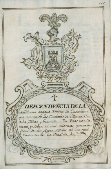 Caso Pedro de Castellón con D. Mencía de Padilla, hermana del obispo Don García de Padilla, confesor que fue de los Reyes Católicos Don Fernando y Doña Isabel, y Ayo del Principe Don Juan. Obispo de Santo Domingo, que es en la Isla Española, de la Indias del Mar Océano...[1:11] [1-Descendencia de la nobilísima antigua familia Castellón] Por Blas de Salazar. |
